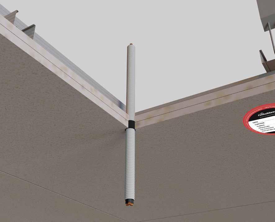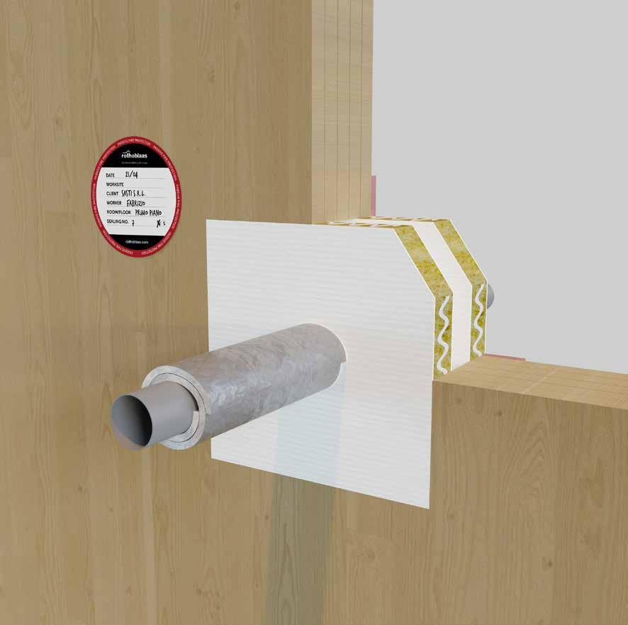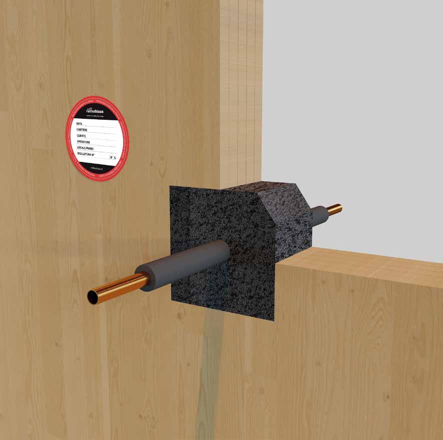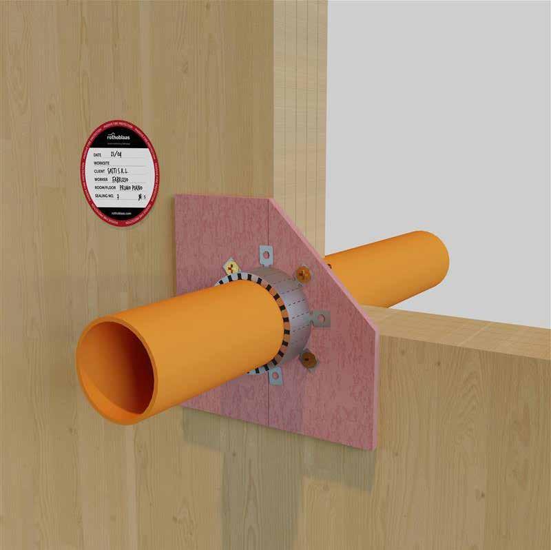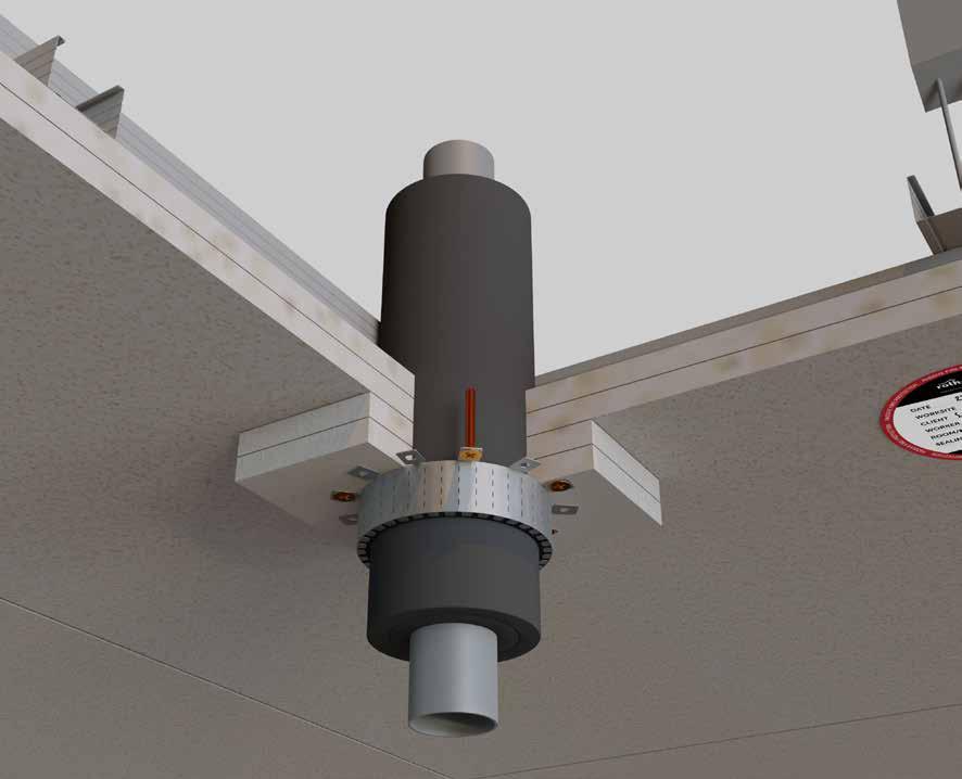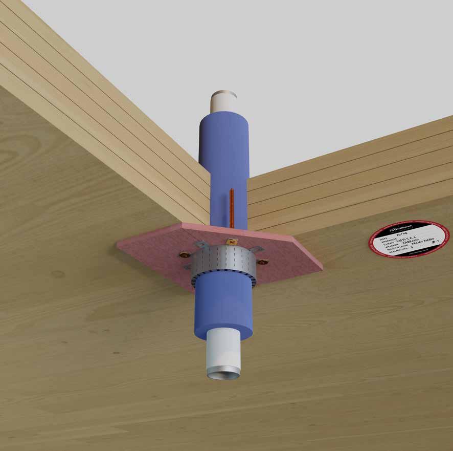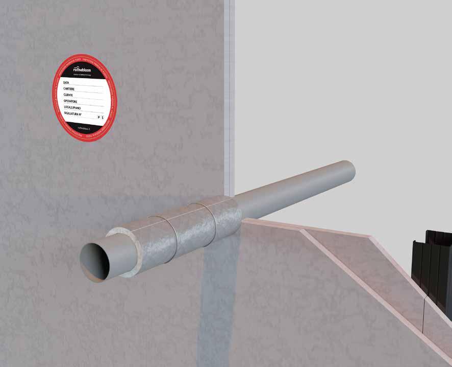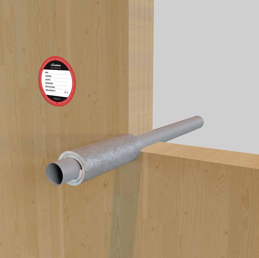 (11) W przypadku przewodów rurowych o średnicy powyżej 110 mm należy zainstalować dwa sąsiadujące ze sobą elementy COLLUM, łącząc blachę pierwszego COLLUM z drugim za pomocą wkrętów samogwintujących (patrz karta techniczna). Przepisy odniesienia: EN 1363-1 | EN 1366-3
