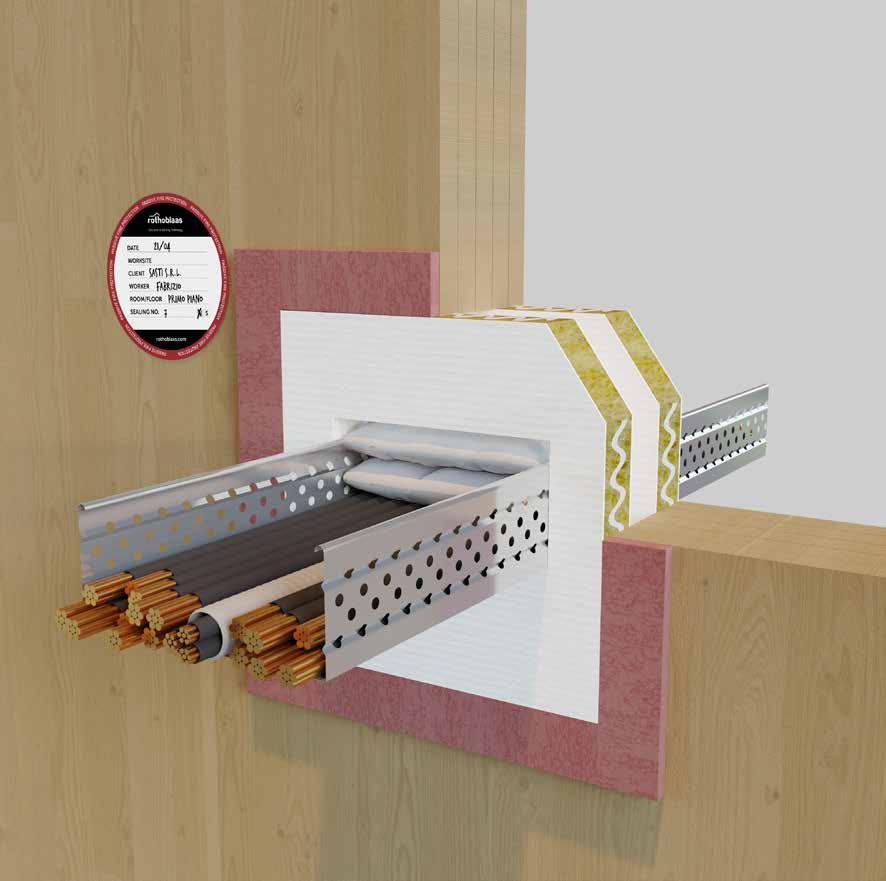 Badania przeprowadzono zgodnie z normą EN 1366-3 "Badania odporności ogniowej instalacji zasilających - Część 3": Uszczelniacze do przepustów” w których określono metody badań i kryteria oceny zdolności systemu uszczelniającego do przepustów do utrzymania odporności ogniowej elementu oddzielającego w punkcie, w którym jest on przecinany przez system.