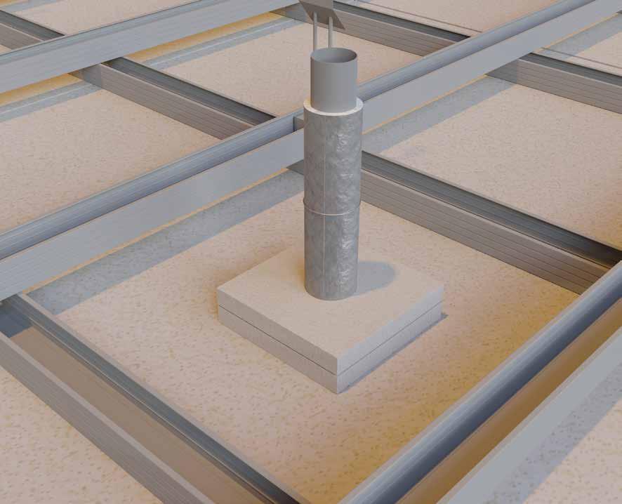 PRZEPUST Z OTWOREM SKALIBROWANYM NA DACHU Z RURKAMI ZE STALI IZOLOWANYMI I COLLUM LUB UNICOLLUM