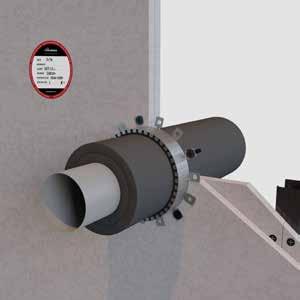 PVC ≤ 110 3,2 - 8,1 (18) W przypadku przewodów rurowych o średnicy powyżej 110 mm należy zainstalować dwa sąsiadujące ze sobą elementy COLLUM, łącząc blachę pierwszego COLLUM z drugim za pomocą wkrętów samogwintujących (patrz karta techniczna). Przepisy odniesienia: EN 1363-1 | EN 1366-3