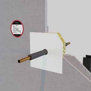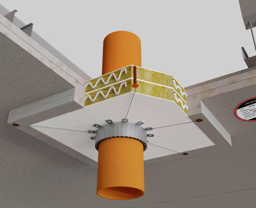 (1) Stworzyć ramę z płyt kartonowo-gipsowych o grubości 50 mm z podwójną płytą typu F Przepisy odniesienia: EN 1363-1 | EN 1366-3