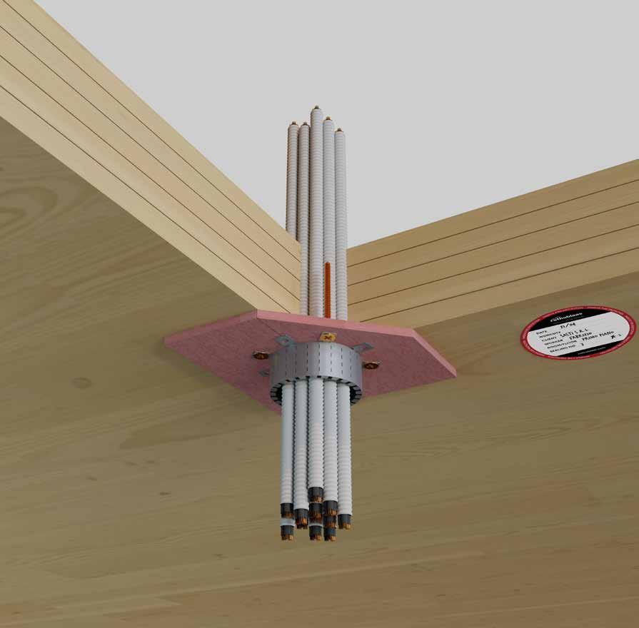 PRZEPUST Z OTWOREM PRZEWYMIAROWANYM NA STROPIE Z CLT Z KORYTKIEM KABLOWYM I SACCUS + PANEL