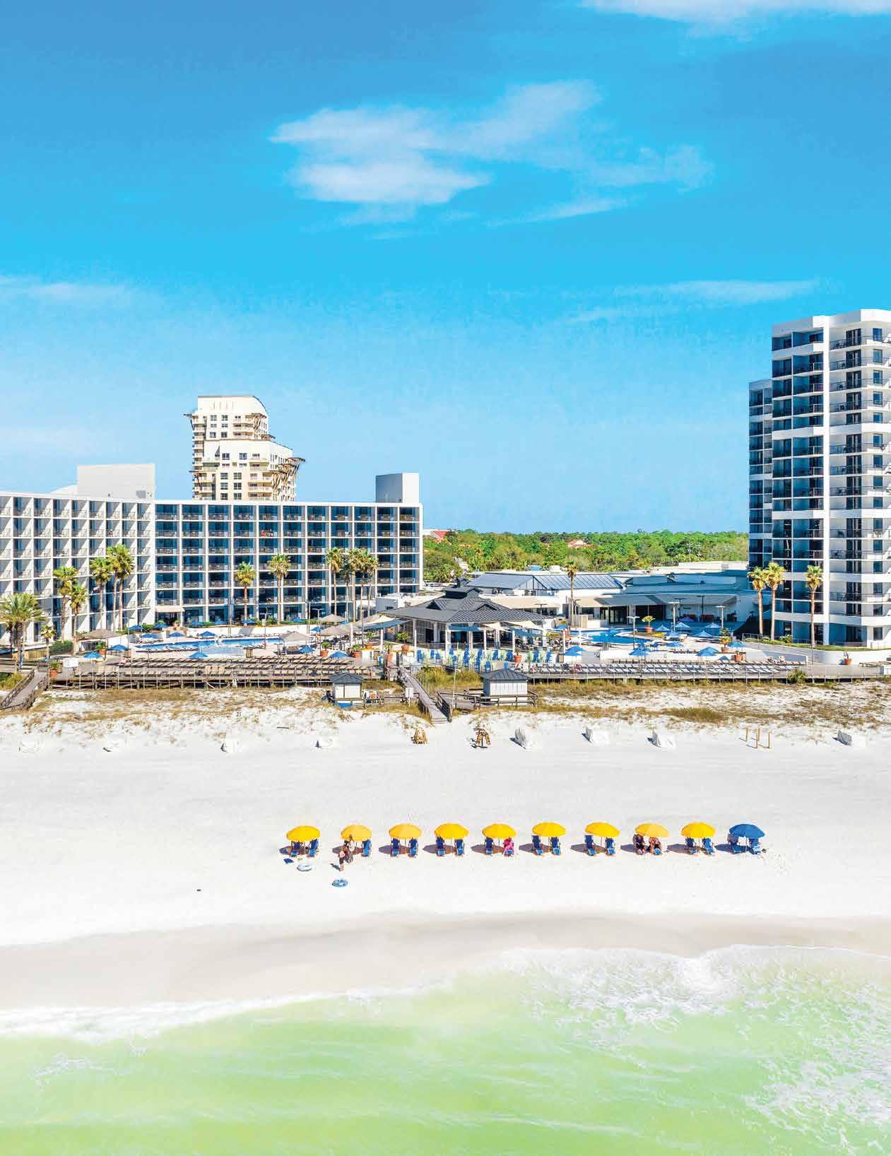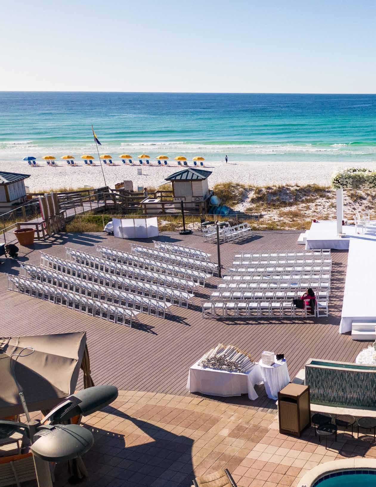 With more than 60,000 square feet of award-winning function space across ballrooms, conference rooms and expansive outdoor decks, the resort can host groups as small as 10 and as large as 2,000. The addition of the Palm Room, a dualpurpose space with large format TVs, bar service, lounge seating, and two private restrooms, further enhances a myriad of options available for your event. From board meetings and corporate retreats to large-scale weddings, Hilton Sandestin Beach ensures that every detail is expertly handled.