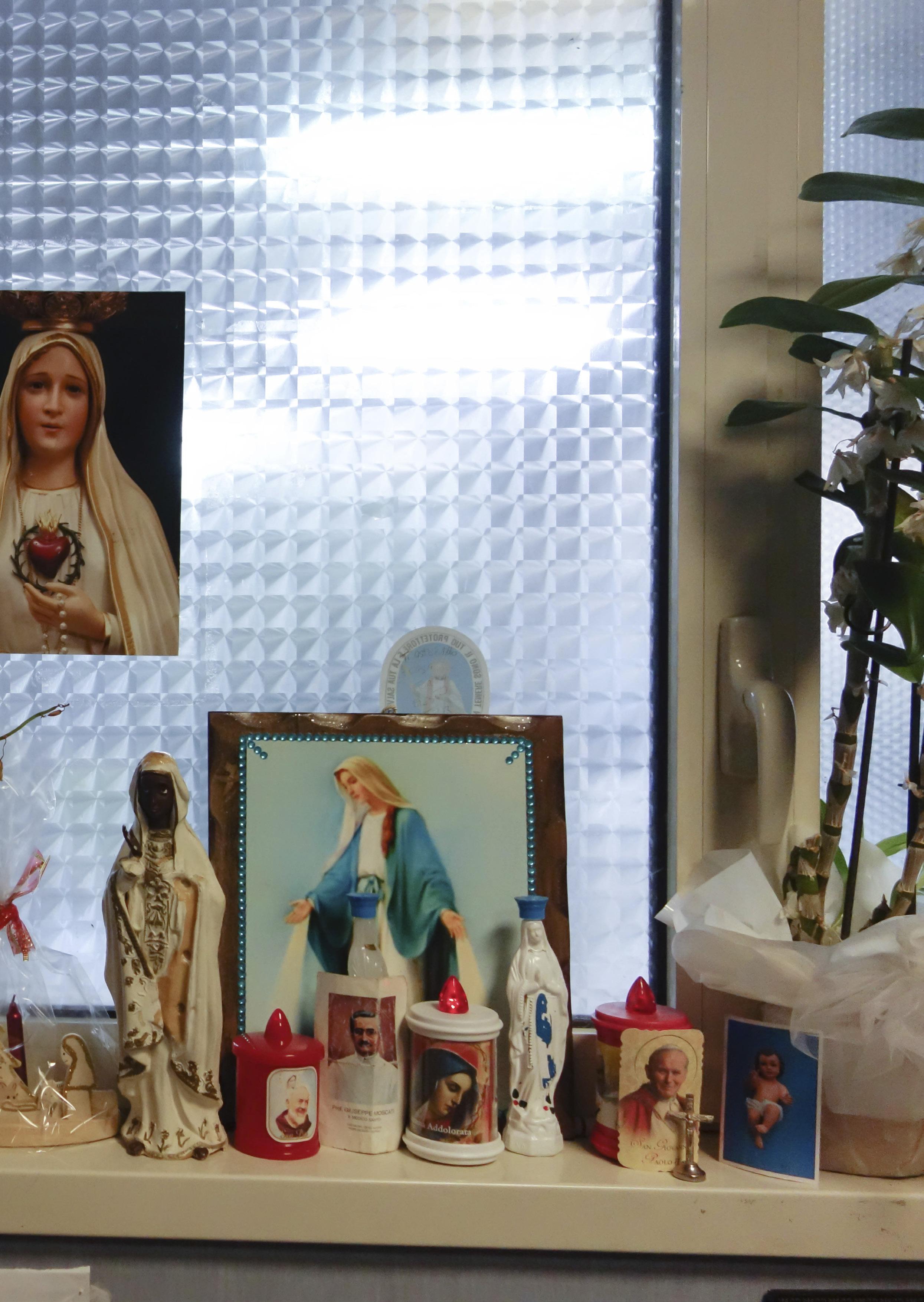 My images record moments with her for over a year. The show her temporary recovery, the hospital, religious icons spreading everywhere, her empty flat, her coma, and, finally, her death.