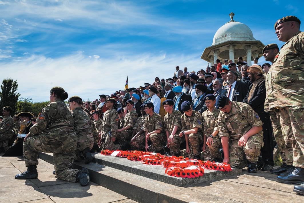Following the outbreak of the First World War, Indian troops were scheduled to be garrisoned in Egypt. Early British losses in August 1914 saw them dispatched to Europe. Having arrived in late September, they were fighting around the Ypres area (Belgium) only a few weeks later. Wounded Indian soldiers were transported from the Western Front to Brighton, where they were distributed amongst buildings temporarily converted to hospitals (including the Royal Pavilion). Recovery and treatment saw many men either returned to the Front Line or sent home. Care was taken to respect the cultural and religious needs of Hindus, Sikhs and Muslims. Muslim men who died were taken to the Shah Jahan Mosque in Woking to be buried in accordance with Islamic tradition. The bodies of fifty-three Hindus and Sikhs were taken to a funeral pyre (ghat) on the nearby South Downs for cremation, prior to their ashes being scattered in the English Channel. It seems that very few of the soldiers stayed in Brighton beyond 1915. However, one notable impact was the building of a Chattri on the site of the ghat. An annual service of remembrance is now held there, with recent ceremonies attended by the Indian relatives of those cremated.
