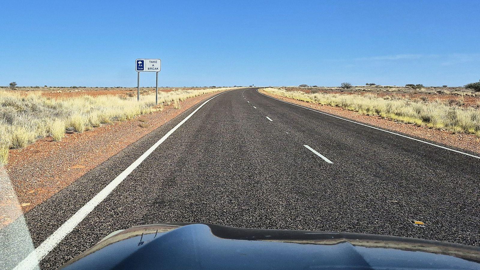 It's not a big deal for the locals, apparently. Truck drivers ride their road trains along that route in one long day, a Greyhound bus takes only 18 hours with one change of driver, and most Australians think nothing of driving several hundred kilometers for a quick visit down the road.