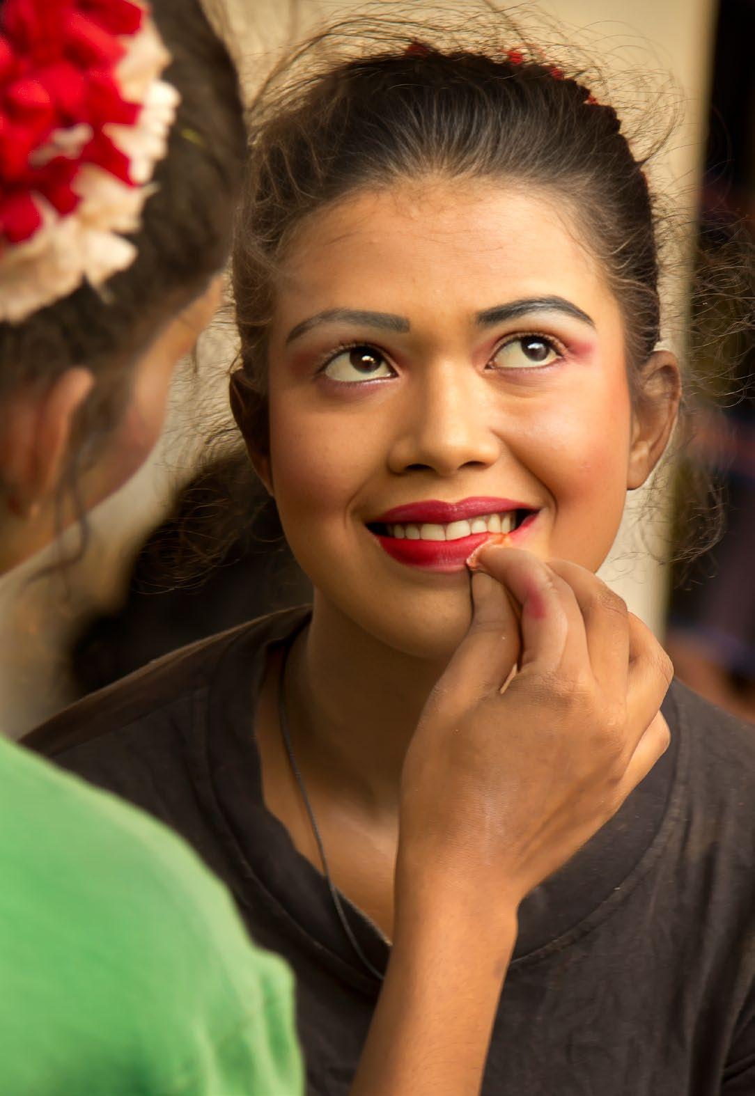 Lankan festival is complete without numerous dressed up elephants, and so the elephants also had their daily bath nearby. Each evening there is grand procession and this was to be the highlight for us. Thousands of people from all over Sri Lanka come to perform in the nightly procession, dressed (and beautifully made up) in a multitude of traditional costumes. We were well looked after by our local photographic guide, Saman, and had the opportunity to see and talk with many performers while they got themselves ready during the afternoon, in and around their dormitory accommodation. Everyone was so friendly and very happy to be photographed.