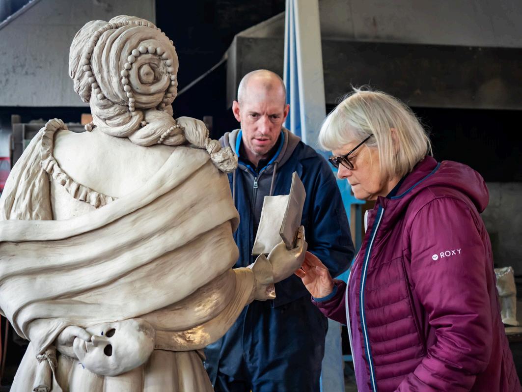 Christine had proposed a very lifelike sculpture, which people could relate to, similar in style to her previous work which includes suffragette Emily Wilding Davison in the centre of Epsom, Surrey; the young climate change activist Greta Thunberg for Winchester University; and the composer and writer Dame Ethel Smyth which stands enthusiastically conducting at Dukes Court in Woking, Surrey.
