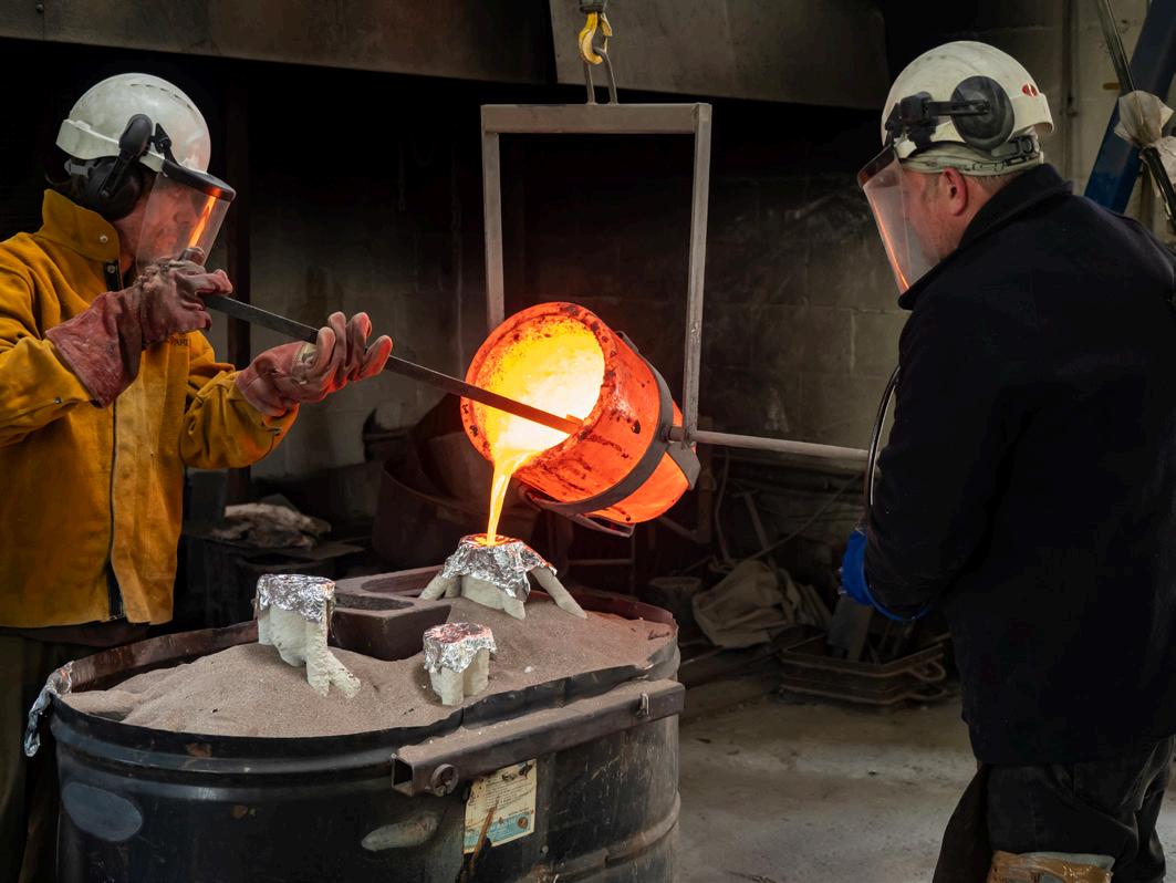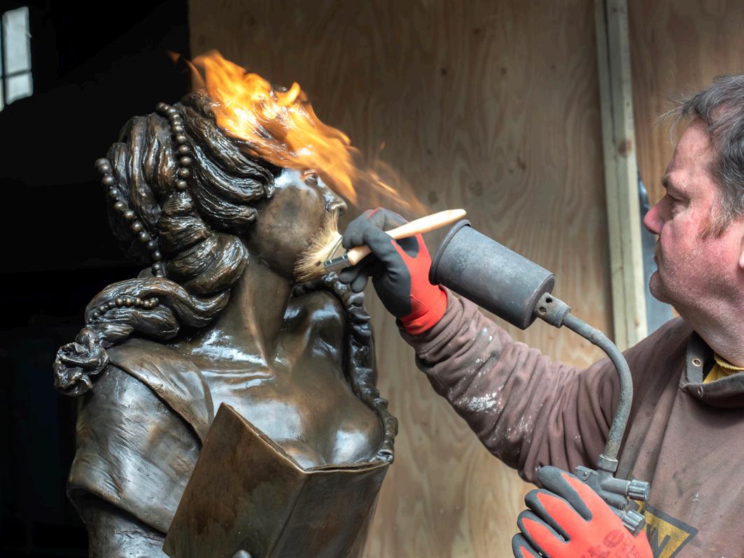 With the sculpture looking once again like the clay that formed it, it is time for colouring with the final patina to be applied. With the client present and in natural daylight, a blowtorch applies the patina, first making the surface look liquid before cooling to its final appearance, with every tiny detail inspected by the client with an artist’s critical eye.