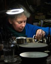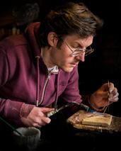 Embedded in sand, each section was filled with metal and set aside to cool before all the channels and extraneous bits were sawn, filed, or hacked off. With all the parts, large and small, liberated from the ceramic mould and extraneous lengths of bronze, work began to re-assemble Aphra and weld her together. The technician’s skill is in successfully hiding welds that looked like bad surgery scars.
