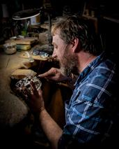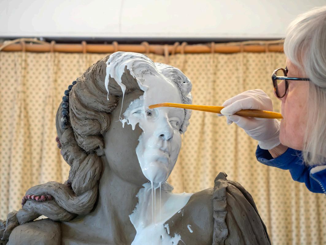Satisfied with the clay version, it was time to start the moulding process. Christine started at the top, pouring latex and blowing it into all the little crevices.
