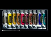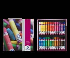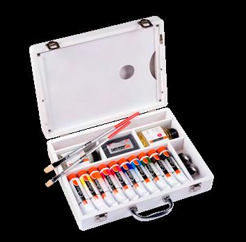 Contents: 24 tubes - 10 x 15 ml tubes (283-285-339-370395-517-568-576-623-735), 12 x 40 ml tubes (227-254284-311-366-377-409-411-506-530-615-618), 2 x 60 ml tubes (104-105), 3 auxiliaries, 4 brushes, 1 painting knife and various accessories.