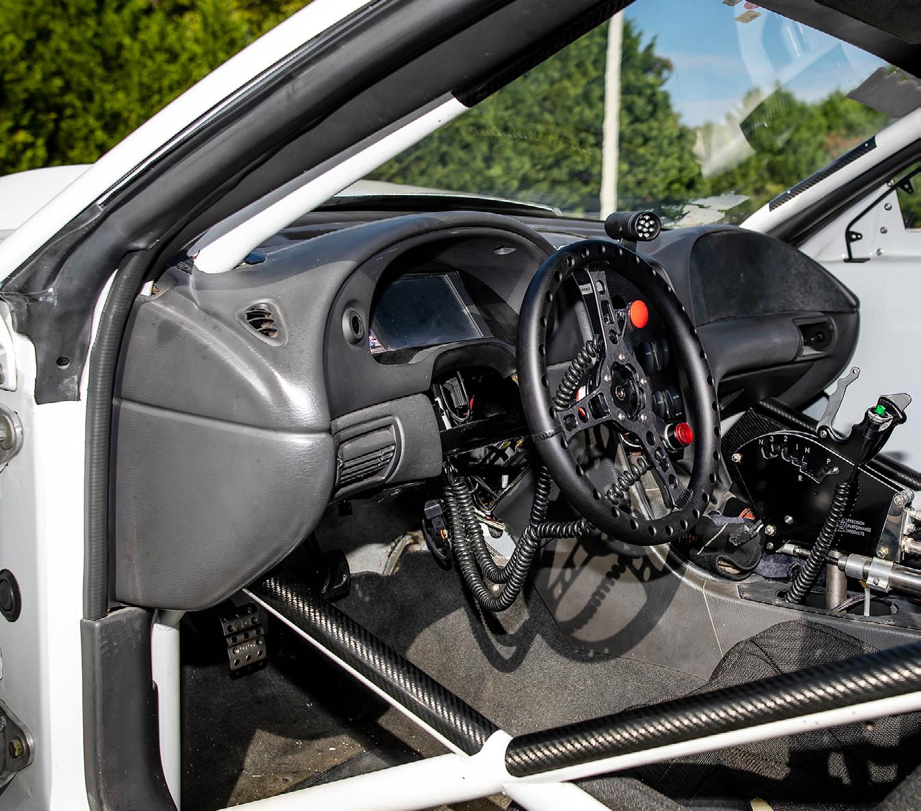 Keith. Likewise, the factory console has been retrofit with a Precision Performance Products shifter. Carbon doors were painted body color, but the center of attention is Keith’s extensive wiring affixed to a carbon panel attached to the passenger side cage.