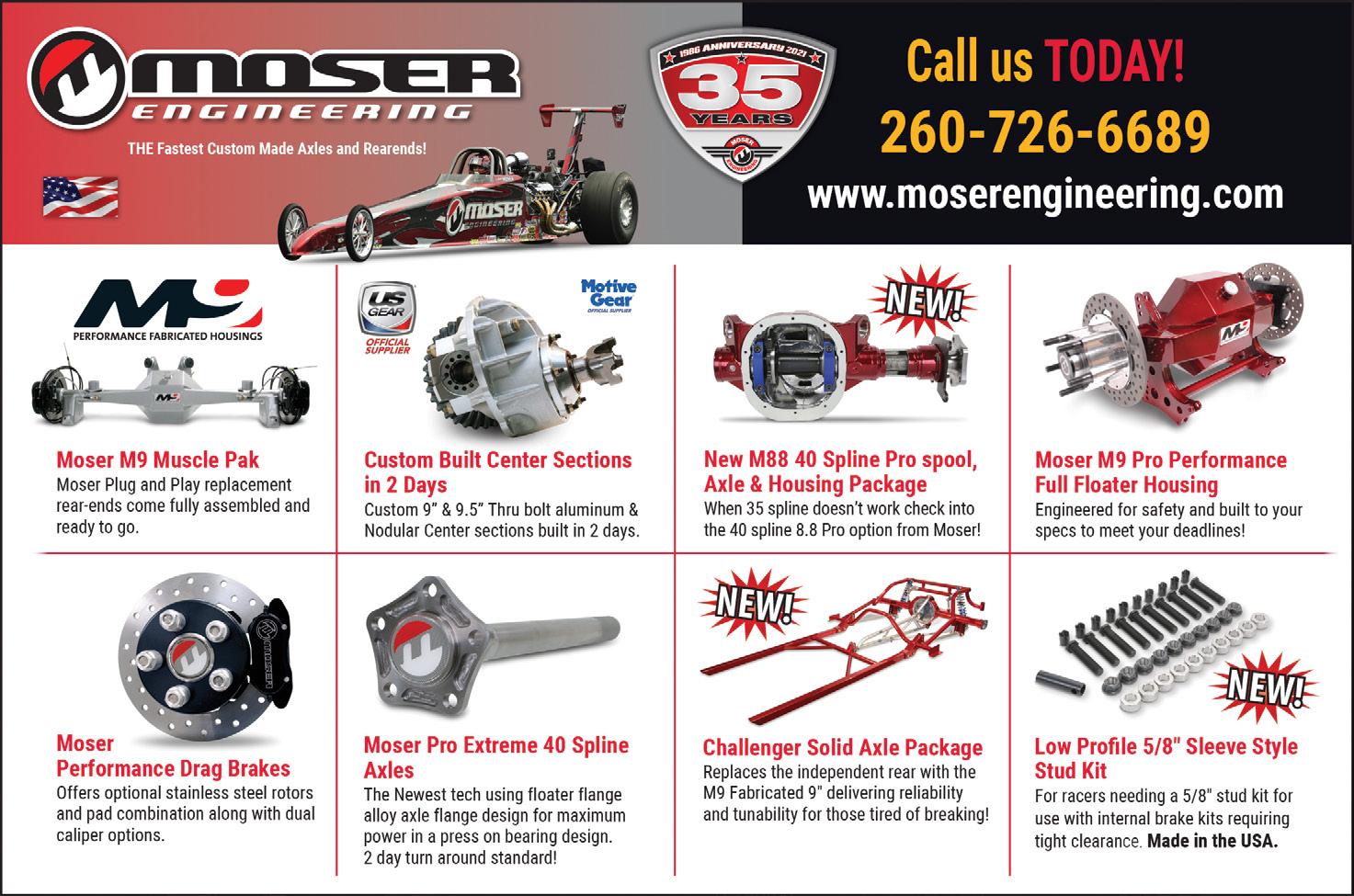 Moser Fab 9” with 35 spline gun drilled axles 4.30 rear gear for ⅛ mile and 3.73 for ¼ mile racing.