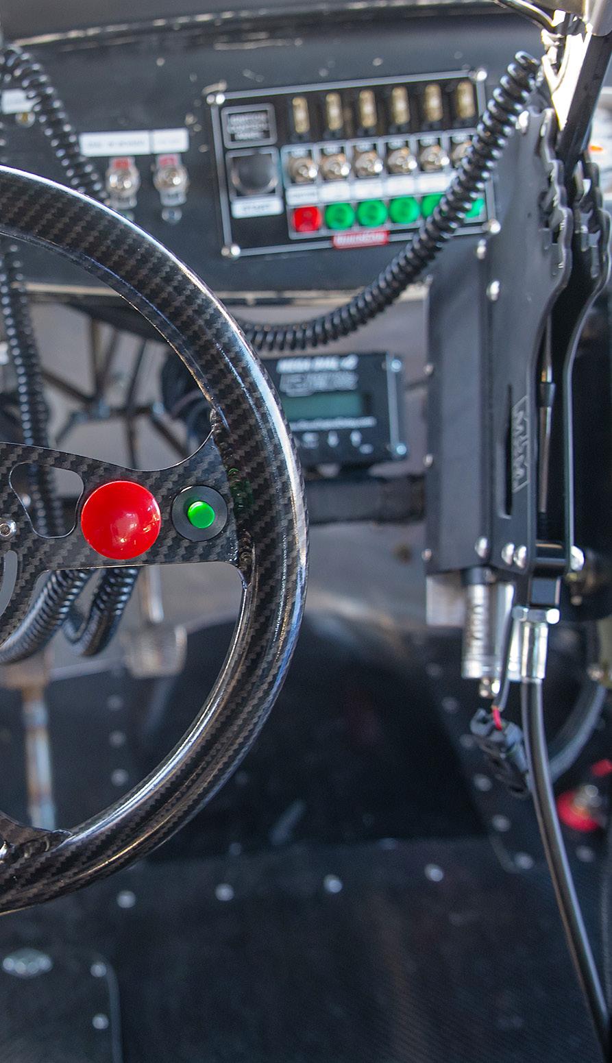 ends, and a billet shifter is mounted at easy-grab height with the battery kill switch next to it.