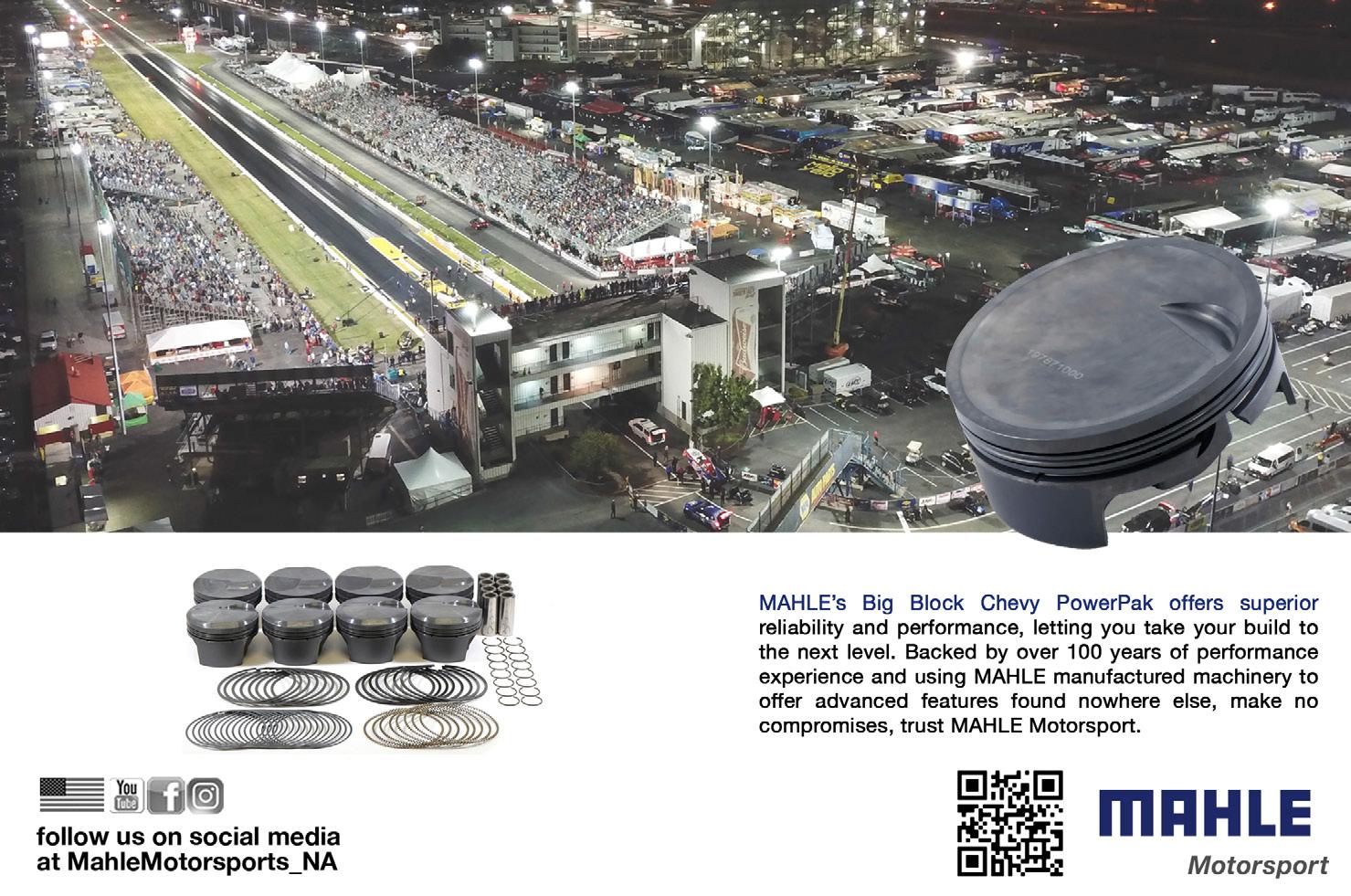 BMP high rise cast intake with Holley 4500 Dominator carburetor using VP Racing Fuels Q16 Fuel.
