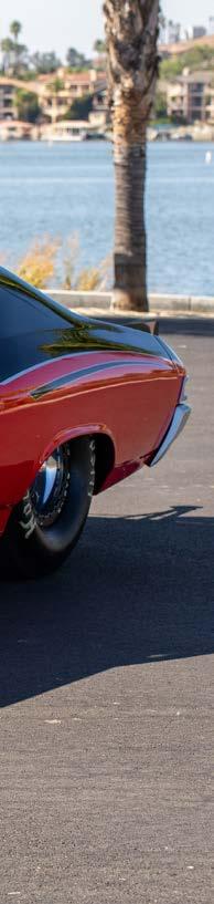 steel including the doors and fenders, with the exception of the ‘glass hood and trunk lid. Super Stripes Customs did the slick two-tone paint scheme that just “works” with the Chevelle body lines. The factory glass remains except for the door windows which were replaced with poly units.