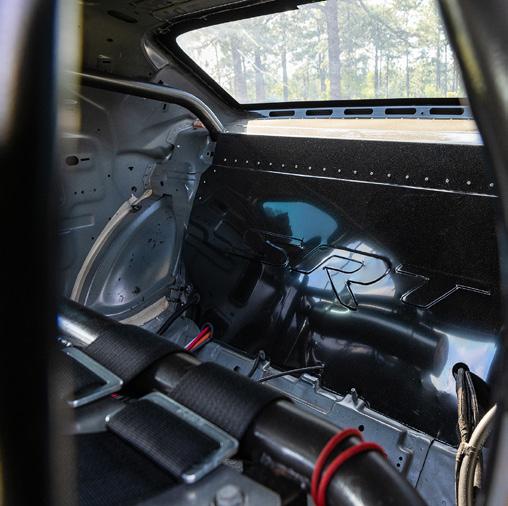 Tey soon purchased an S&W Racecars back-half kit and went to work. Te complete package in cluded everything from the frame rails and rear end housing with axles to the rear suspension with double adjustable ladder bars, ad justable panhard bar and coilover shocks. Tey also opted for brakes, wheel tubs, transmission tunnel and trunk pans from S&W. Once the back-halved section of the