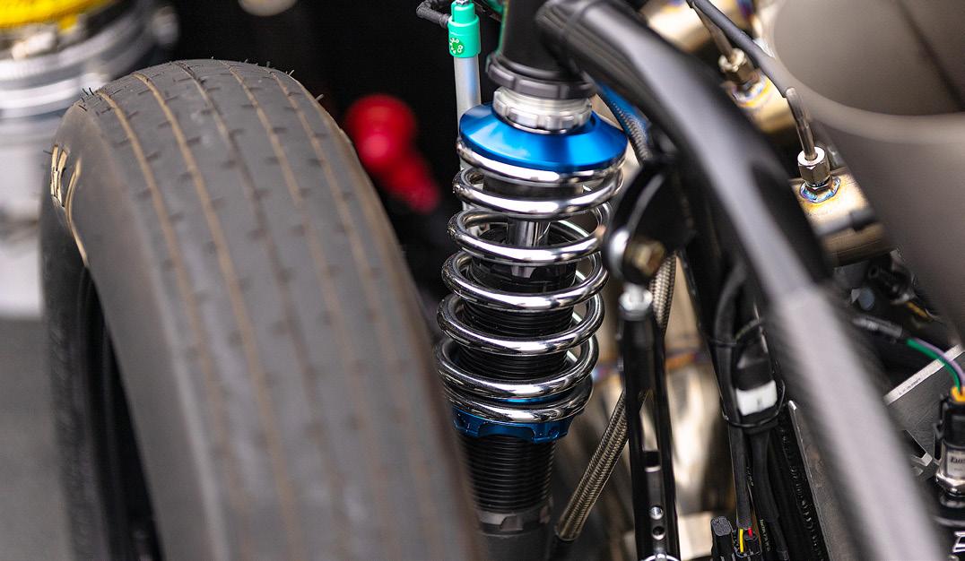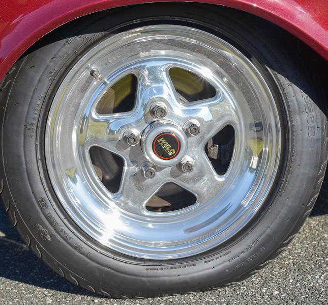 The standard Pro Street big fat rear tires and skinny fronts consist of Weld Pro Star 15x15 rears with Mickey Thompson Sportsman S/R 29x18R15 tires and 15x3.5 fronts.