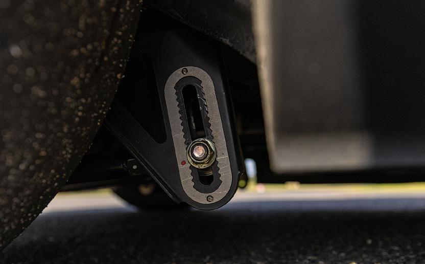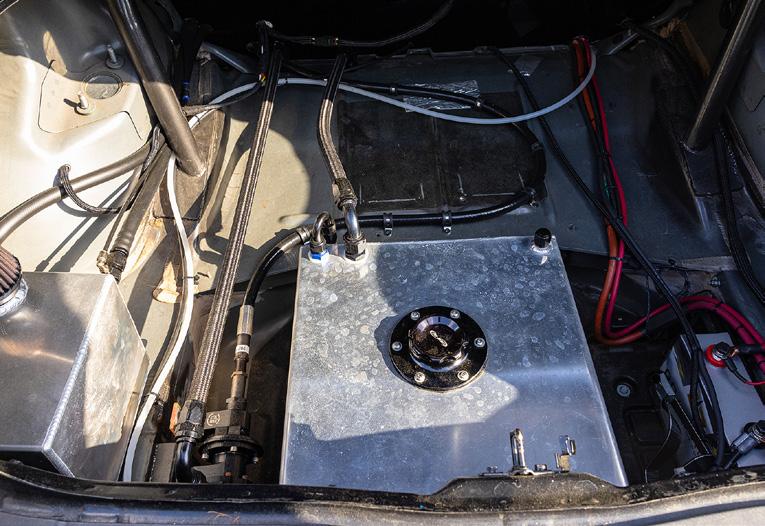 The car is a back-half min tub with ladder bar/coilover rear sus pension that hangs a custom Ford 9-inch rear diff with the center section built by Braeden Hager. Although it’s set up to accept a sizeable 31x13 tire, they have currently been run ning a 10.5 non W slick with outstand ing results.