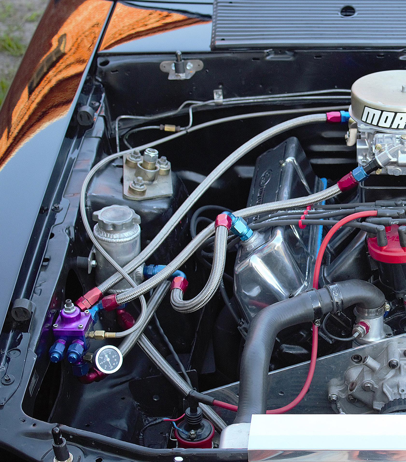 er deciding on a near bullet proof rotating assembly, the duo went to work on a set of Ford 1971 D1 closed chamber 4V heads and developed a custom grind COMP cam, specs of which are on a need to know basis only. A hand-ported intake and Tumper Dominator style carb top things off. Oh, and by the way, you won’t find a power ad der on this no-prep hot rod!
