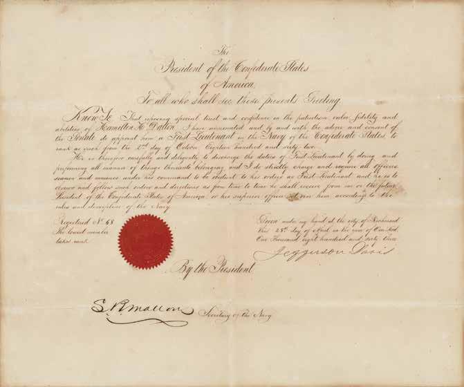 10. James Madison Document Signed as President. Partly-printed vellum DS as president, one page, 11 x 7.25, January 1, 1817. President Madison appoints Oscar Bullus as “a Midshipman in the Navy of the United States.” Signed at the conclusion in ink by President James Madison and countersigned by Secretary of the Navy Benjamin Williams Crowninshield. In fine condition. Starting Bid $200