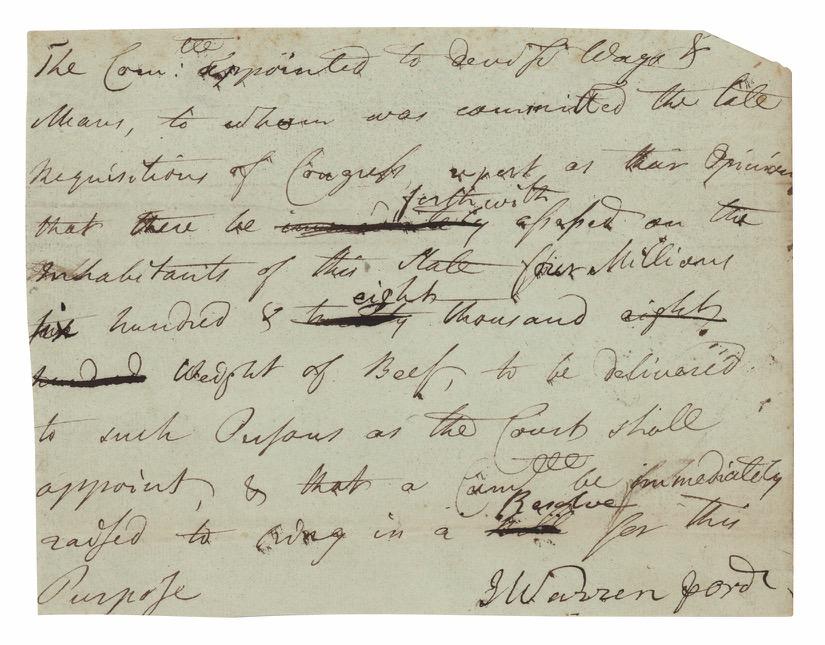 In October 1780, the arrival of 2,500 British troops along the Virginia coast formally ended the state’s prolonged stretch of military inactivity during the Revolutionary War. Led by Brigadier General Alexander Leslie, the British Army soldiers established a fortified position at Portsmouth and soon began raiding the area for supplies. Six days before penning the offered document, Jefferson wrote an impassioned letter to Congressional President Samuel Huntington, pressing firm the issue of a more well-prepped and well-armed defense: ‘The few who have arms have turned out with the greatest alacrity, but they are not of a nature proper to oppose horse...if great supplies of arms are not immediately sent on there is no event which may not be expected.’ Excellent Revolutionary War content written during a tense time after the British invaded Virginia, where one year later Washington would defeat Cornwallis at Yorktown. Having already authored the Declaration of Independence, Jefferson would go on to be the first secretary of state, second vice president, and third president of the United States. Starting Bid $1000