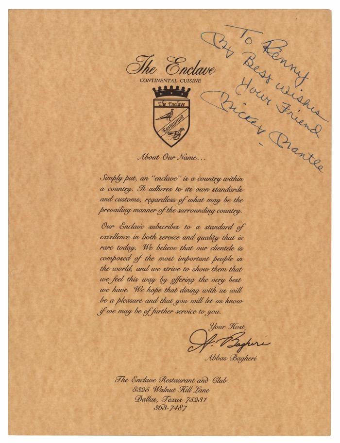 SALE OF AUTOGRAPHED COLLECTIBLES: AS REQUIRED BY LAW, A DEALER WHO SELLS TO A CONSUMER ANY COLLECTIBLE DESCRIBED AS BEING AUTOGRAPHED MUST PROVIDE A WRITTEN EXPRESS WARRANTY AT THE TIME OF SALE. THIS DEALER MAY BE SURETY BONDED OR OTHERWISE INSURED TO ENSURE THE AUTHENTICITY OF ANY AUTOGRAPHED COLLECTIBLE SOLD BY THIS DEALER.