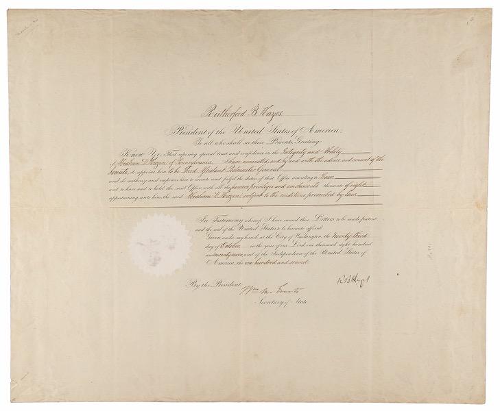 17. President U. S. Grant Seeks to Build a Mexican Canal on the Isthmus of Tehuantepec, an Atlantic-to-Pacific Transportation Route Predating the Panama Canal. Partly-printed DS as president, one page, 8 x 10, October 25, 1870. President Grant directs the Secretary of State to “affix the Seal of the United States to my full power to Thomas H. Nelson, Minister to Mexico, to conclude a Convention for a rail-road and canal across the Isthmus of Tehuantepec.” Signed neatly at the conclusion by U.S. Grant. In fine condition, with faint toning and soiling.