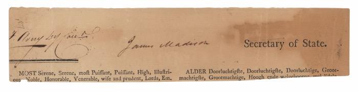 4. James Madison Third-Person Autograph Letter