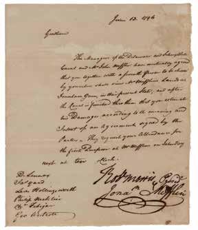 5. James Monroe Autograph Letter Signed to ConsulGeneral at Paris. ALS signed “Jas. Monroe,” one page, 7.75 x 9.5, July 13, 1800. Handwritten letter to American diplomat Fulwar Skipwith, consul-general at Paris, in full: “Being requested by Mr. Dunlop of Port Royal to recommend to him some person qualified to take charge of a claim of his on the French govt., I have taken the liberty to mention you to him. I doubt not you will do justice to the confidence he may repose in you. He will explain the affr. fully for yr. information, to wh. refer you.” In fine condition, with slightly irregular spotting toning. Starting Bid $200