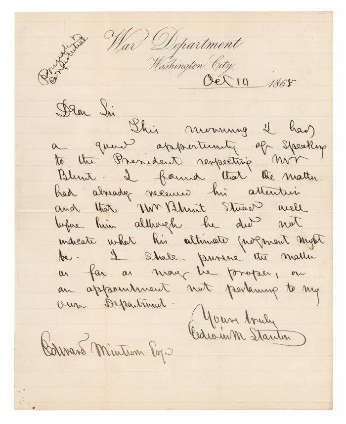 General Grant writes to President Andrew Johnson, recommending a heroic Civil War post office agent known “for furnishing mails to the Armies in the field with promptness”