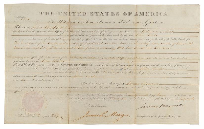 7. President John Tyler Builds Relations with the German State of Wurttemberg. Scarce partly-printed DS as president, one page, 8 x 10, June 22, 1844. President Tyler directs the Secretary of State to “affix the Seal of the United States to the Ratification of the Convention for the mutual abolition of the droit d’aubaine and taxes on emigration, between the United States and His Majesty the King of Wurttemberg.” Signed boldly at the conclusion by John Tyler. In fine condition. Starting Bid $200