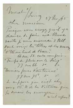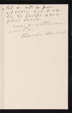 would never have exhibited that. But a landscape by Pissarro does honor to the exhibition, and two quite beautiful still lifes by Monet.” In fine condition, with light toning along the hinge.