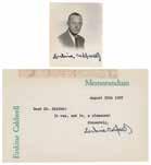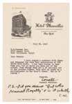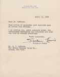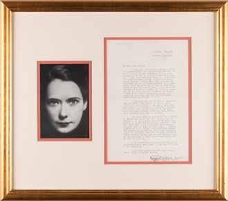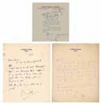 6024. Georgia O’Keeffe Autograph Letter Signed. Early ALS, one page, 7 x 10.25, Shelton Hotel [New York] letterhead, no date [1920s]. Handwritten letter to an unknown recipient, in full: “Thanks for the fruit — and for not wanting me to be sick — and for making me want to paint grapes — I’m feeling better— painting the grapes — and smiling.” O’Keeffe adds a postscript: “It would be nice if you would come and see me some time — Phone – Murray Hill 7300.” In fine condition. O’Keeffe lived and worked at the Shelton Hotel in the 1920s, during which time she created some of her most memorable works, with many incorporating imagery from Manhattan’s distinctive architecture. Starting Bid $200