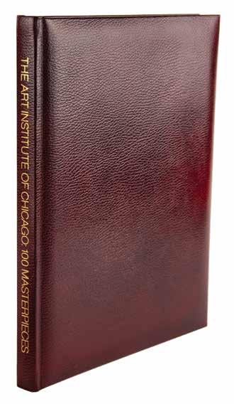 6002. Artists: Marc Chagall, Joan Miro, Ivan Albright, and Willem de Kooning Signed Book - The Art Institute of Chicago: 100 Masterpieces. Exquisite multi-signed book: The Art Institute of Chicago: 100 Masterpieces. First edition, first printing. Chicago, Illinois: Rand McNally & Company / Printed and bound by R. R. Donnelley & Sons and Lakeside Press, 1978. Bound in fine dark red Morocco leather with gilt titling to the spine, and accompanied by its matching red leather clamshell presentation box with a large gold lion on the front lid, 12 x 15.5, 159 pages. Signed inside on separate pages in ballpoint by adored artists Marc Chagall, Joan Miro, Ivan Albright, and Willem de Kooning. In fine to very fine condition, with some wear to the clamshell case. Starting Bid $200