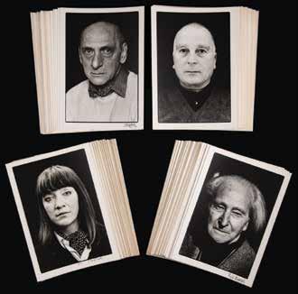 6001. Artists: (185) Signed Portraits by Heinz Gunter Mebusch, with Joseph Beuys, Keith Haring, Gerhard Richter, and More. Remarkable limited edition collection of 199 portrait photographs of artists by German photographer and experimental artist Heinz Günter Mebusch, 185 of which are signed by the sitters. The portraits are gelatin silver prints on baryta paper, all measuring approximately 8.25 x 11.5, and numbered 22/25 on the reverse. Signers include: Joseph Beuys, Arno Breker, Paul Flora, Johnny Friedlander, Ernst Fuchs, Karl Otto Götz, Keith Haring, Jörg Immendorff, Loriot, Heinz Mack, Georg Muche, Gerhard Richter, H. A. Schult, Roland Topor, Günther Uecker, Tomi Ungerer, Wolf Vostell, Dondi White, Shizuko Yoshikawa, Zao Wou-ki, and many more. The portrait set is loosely stored in its original wooden coffer. In overall fine condition.