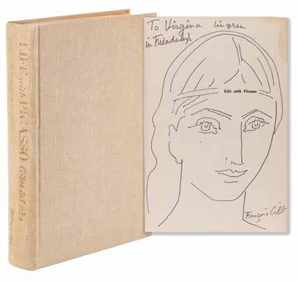 6011. Francoise Gilot Signed Book with Sketch - Life with Picasso. Signed book: Life with Picasso. Third printing. NY: McGrawHill, 1964. Cloth-bound hardcover, 6.5 x 9.5, 373 pages. Signed and inscribed on the half-title page in black ink, “To Virginia Lingren, in Friendship, Francoise Gilot,” who adds a wonderful full-page sketch of a woman’s face. In very good to fine condition, with light staining to the upper right page corners, and light sunning to the slightly loose spine. Starting Bid $200