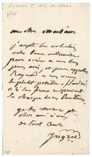 6016. Jean Auguste Ingres Autograph Letter Signed. Esteemed French Neoclassical painter (1780–1867) whose portraits are considered an influential precursor to modern art. ALS in French, signed “Ingres,” one page, 4.75 x 8.25, no date. An untranslated handwritten letter to a gentleman. In fine condition. Starting Bid $200
