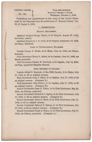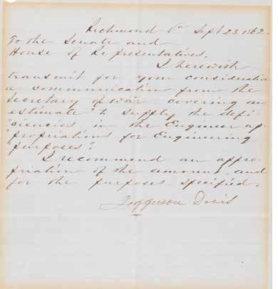 - Unsigned handwritten letter by First Lady Mary Todd Lincoln, one page, 5 x 8, December 17, [1864]. From the “Executive Mansion,” Lincoln writes, in full: “The President, will be pleased to have Sen. Trumbull dine with him informally tomorrow evening at seven o’clock. Saturday morning, an answer is requested.” Accompanied by a certificate of authenticity from University Archives.