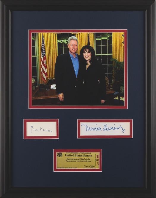 9. Abraham Lincoln Autograph Endorsement Signed as President, Endorsing Former Ohio Governor David Tod. Autograph endorsement signed as president, “And I indorse Gov. Tod, A. Lincoln, Feb. 22, 1865,” on an off-white 4.75 x 4 slip clipped from a larger document. Above, former Ohio Governor David Todd signs his endorsement. Impressively mounted, matted, and framed with an engraved portrait (featuring a facsimile signature) and biographical plaque to an overall size of 28 x 24.75. In very good condition, with repairs to a split vertical fold, some light soiling, and a few scratches to the display’s UV plexiglass.