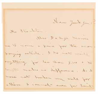 2. George Washington Handwritten Docketing Notation (November 26, 1785). Ink docketing notation in the hand of George Washington, “From, Edw’d Livingston, Esq., 26th Nov’r 1785,” penned on the reverse of an ALS from Edward Livingston, one page, 7.25 x 9, November 26, 1785. Addressed from New York and sent to “His Excellency Gen’l Washington, Livingston’s handwritten letter reads: “I have the honor of introducing to your acquaintance the Count De Castiglioni, an Italian Nobleman who has been well recommended to many Gentlemen in this City and [and] appears to be a man whose Conversation will justify the liberty I take in bringing him acquainted with your Excellency. My Mother and Sisters beg to be remembered to your Excellency & Mrs. Washington.” In fine condition.Read more online at www.RRAuction.com. Starting Bid $200