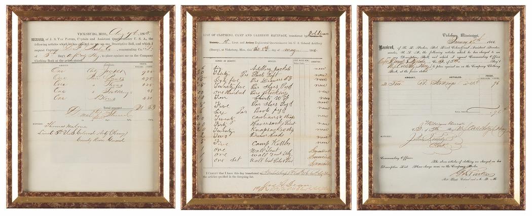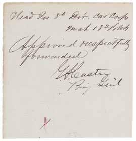 11. U. S. Grant Civil War–Dated Autograph Letter Signed, Announcing Rep. Washburne’s Arrival at His City Point Headquarters for a Gold Medal Presentation. Civil War-dated ALS signed “U. S. Grant, Lt. Gen.,” one page, 7.5 x 6, Head Quarters Armies of the United States letterhead, March 11, 1865. Handwritten letter to “Maj. Eckert,” in full: “Mr. Washburne and party arrived here this morning. Please inform Capt. Whitney. Will you be good enough to get me a pair of No. 10 children’s shoes, thick soled, and send them by the mail messenger from my office this evening.” Suede-matted and framed with two portraits and a nameplate to an overall size of 22.5 x 21. In fine condition.