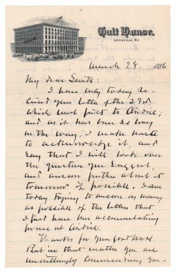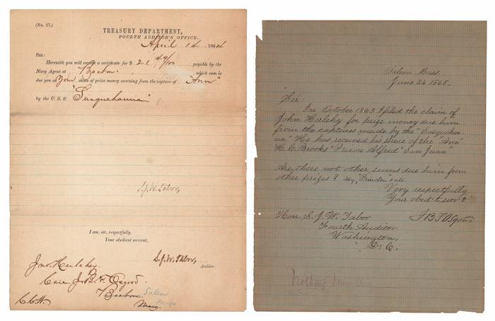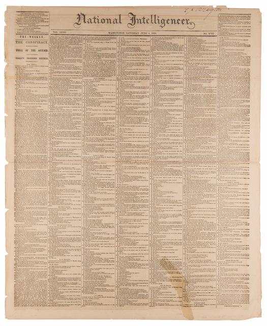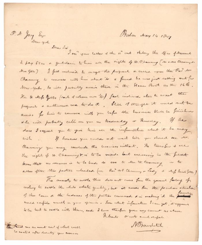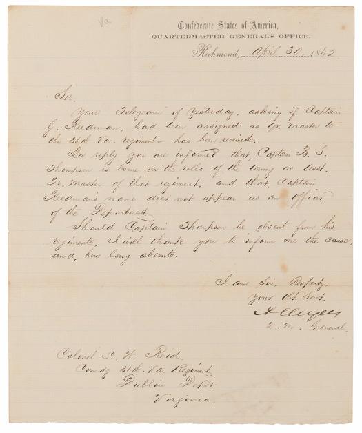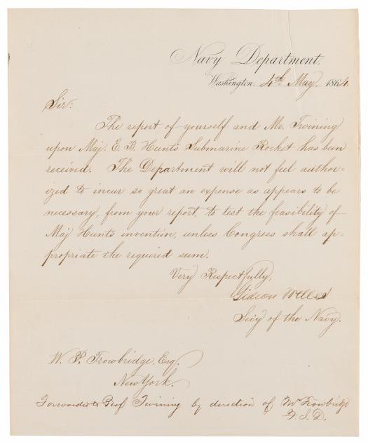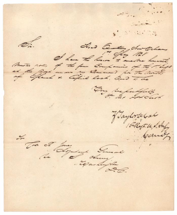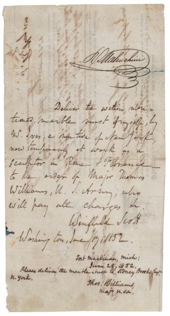 9. John Quincy Adams Autograph Letter Signed, Relating to the Loss of a Troop Transport Ship in the Second Seminole War. ALS signed “J. Q. Adams,” one page, 7.5 x 9.25, February 24, 1838. Handwritten letter to James Collier of Cohasset, Massachusetts, regarding a claim made on the War Department. In part: “I have submitted your Letter of the 6th inst. to the consideration of the Secretary of War, and have received an answer from him enclosing a report from the acting Quartermaster General T. Cross of the following report: ‘In reply to the Letter of Mr. James Collier referred to me by the War Department a few days since I have the honour to state that this office possesses no information whatever in relation to the loss of the ship Charles Wharton or the services alleged to have been rendered by the Schooner Rubicon. It appears however, by Mr. Collier’s own admission, that the Quarter Master at Tampa Bay, paid the captain of the Rubicon six hundred dollars, which it is a fair presumption of the value of his services.’ The fair presumptions of the Quarter Master General may doubtless be rebutted by positive testimony. If you have any such, I shall be happy to give any assistance in my power to exhibit the same before the proper department.” In very good to fine condition, with trimmed edges, overall staining, and complete backing. Starting Bid $200