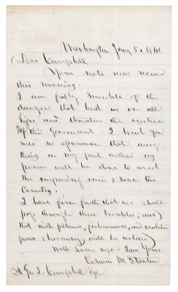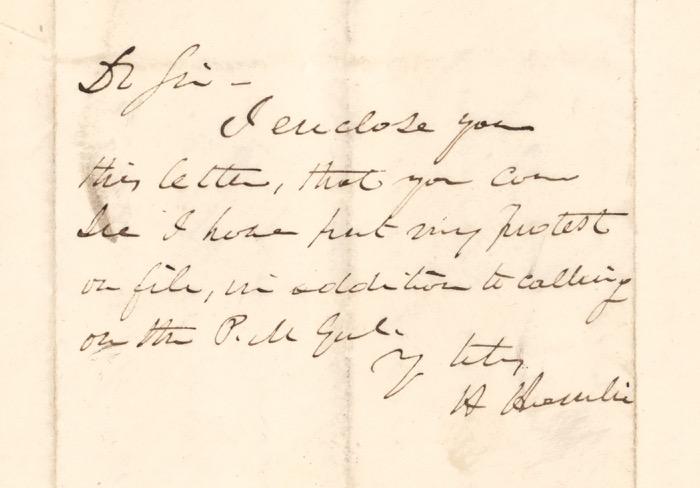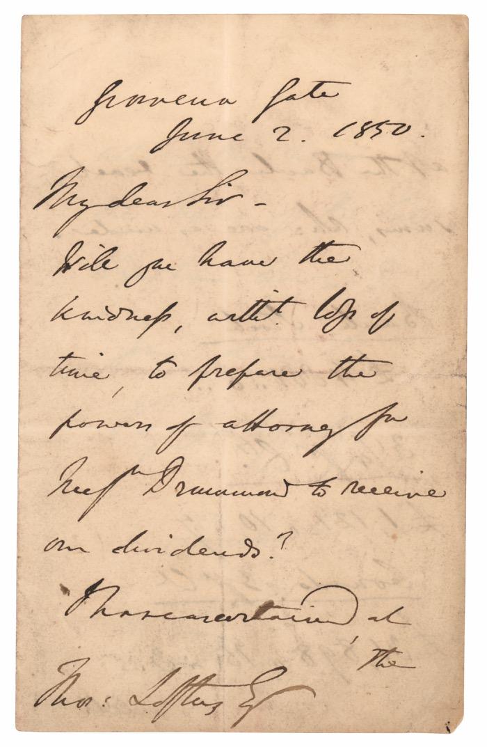 14. John Tyler Autograph Letter Signed on the Abolition of Slavery in Washington, D.C.. ALS, one page, 7.75 x 10, August 20, 1836. Handwritten letter to Secretary of the Senate Walter Lowrie, in part: “Will you do me the favour with as little delay as possible to have copied and forwarded me the resolutions offered by myself to the Senate last winter on the subject of abolishing slavery in the District. A loose sheet of the journal would be better than a copy.” In fine condition.