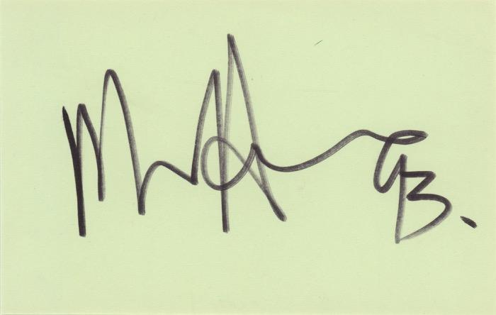 SALE OF AUTOGRAPHED COLLECTIBLES: AS REQUIRED BY LAW, A DEALER WHO SELLS TO A CONSUMER ANY COLLECTIBLE DESCRIBED AS BEING AUTOGRAPHED MUST PROVIDE A WRITTEN EXPRESS WARRANTY AT THE TIME OF SALE. THIS DEALER MAY BE SURETY BONDED OR OTHERWISE INSURED TO ENSURE THE AUTHENTICITY OF ANY AUTOGRAPHED COLLECTIBLE SOLD BY THIS DEALER.