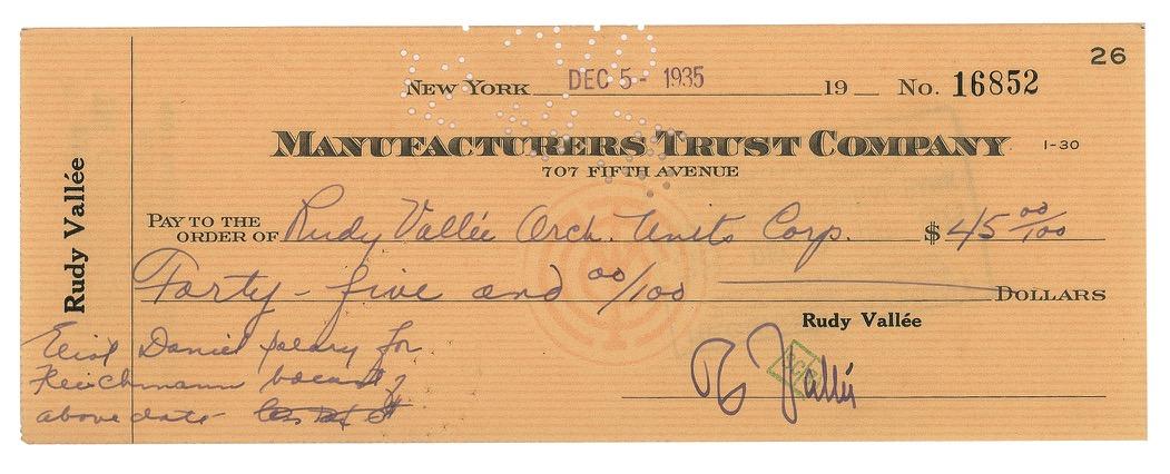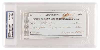 12. Martin Van Buren Signed Check. The Bank of Kinderhook check, 6.25 x 2.75, filled out and signed by Van Buren, “M. Van Buren,” payable to Mr. G. for $5, November 2, 1860. In fine condition, with a smudge to the date, and minor loss to the bottom edge. Encapsulated in a PSA/DNA authentication holder. Starting Bid $200
