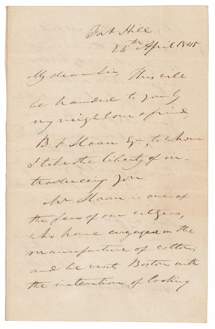 15. James K. Polk Autograph Letter Signed as President. ALS as president, one page, 8 x 10, April 8, 1847. Handwritten letter of introduction for a noted American clergyman, in full: “Having been informed that the Rev’d Henry M. Field of St. Louis, Missouri is about to leave the United States, to make a tour through Europe…I commend him as such to the favorable consideration and attention to the Diplomatic & Consular agents of the United States — and all other American citizens with whom he may meet, during his absence from his country.” In very good to fine condition, with an area of paper loss to the upper left corner repaired and reinforced by complete professional silking on the reverse. Starting Bid $200