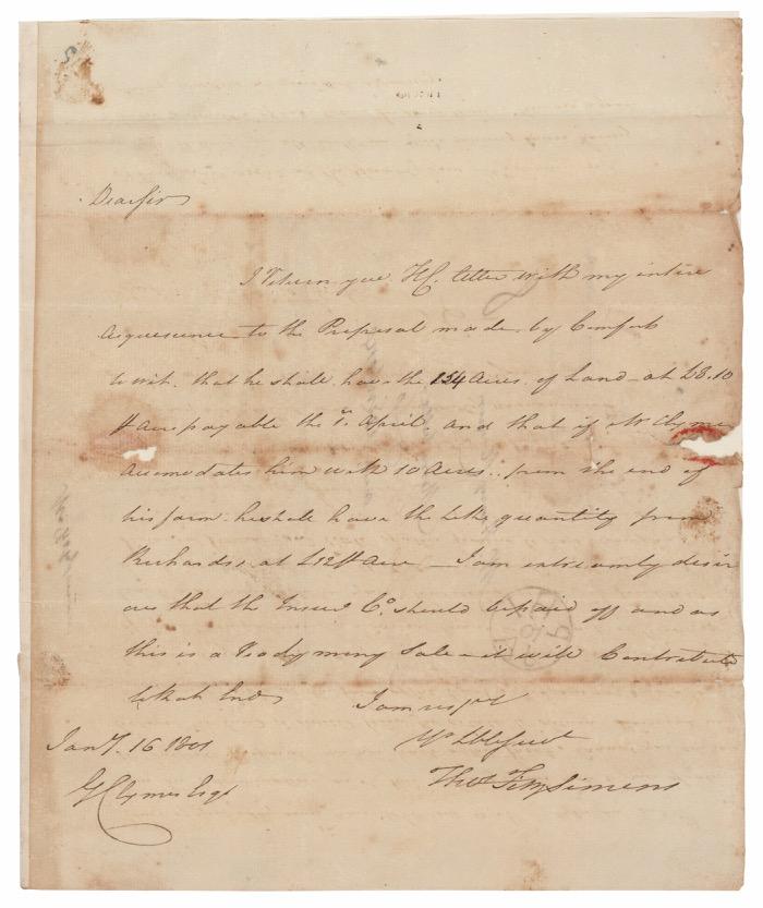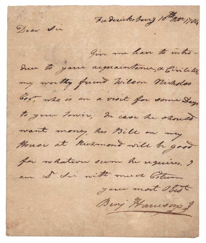now within a few weeks of my eighty third year, and have for many months been confined to my house & a great part of the time to my bed, by a chronic & latterly an acute disease… This explanation will I am sure satisfy you.” In fine condition, with some trivial edge loss, and toning from prior display. A scarce and important handwritten letter by the ‘Father of the Constitution,’ whose wisdom and political advice continued to be sought well into his old age. That Madison should mention the famous document in any context is remarkable. Starting Bid $1000