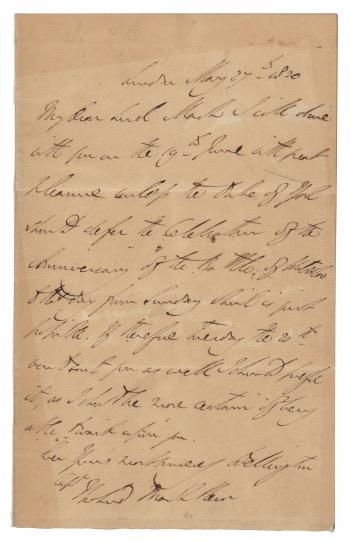 In part: “Nothing could be more gratifying to me than your obliging suffrage to the usefulness of my services since my present residence in Europe…My path of duty has been clear. Whatever success has attended it must be attributed, first to a wiser disposer of human affairs, than any of us; secondly, to the glorious energy of our countrymen, upon the ocean and upon the Land—An energy, which neither our foreign enemy, nor those ‘Wise Men of the East,’ who built their system of politics upon contempt for the American character, had taken